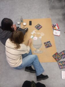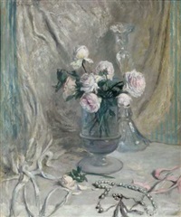 Formé à l’École des Beaux-arts de Lyon où on le trouvait dit-on, brillant mais indiscipliné, il s’est frotté à différentes techniques: le dessin (planches, études, illustrations), la peinture et, à la fin de sa vie, la gravure très sombre, marquée par la noirceur de la première guerre mondiale. Il avait un imaginaire personnel composite, quelque part entre le classicisme et le symbolisme. De son vivant, Charles Sénard était apprécié pour ses natures mortes, bouquets de fleurs essentiellement. Le club dessin s’attaque à interpréter l’une d’entre elles: “Roses dans un vase”, en grand format! Tout en gris colorés, ce tableau est ravissant! La difficulté? la composition, les coloris subtils, le rendu des matières (transparence du verre, les drapés etc.) Les travaux ont commencé! Reprise du chantier en janvier!